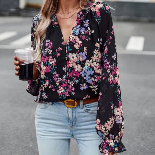 Eleanor | Stylish V-Neck Lantern Sleeve Blouse