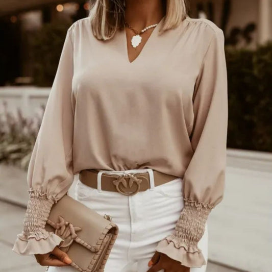 Olivia | Solid Color V-Neck Blouse Chic Cuff Design